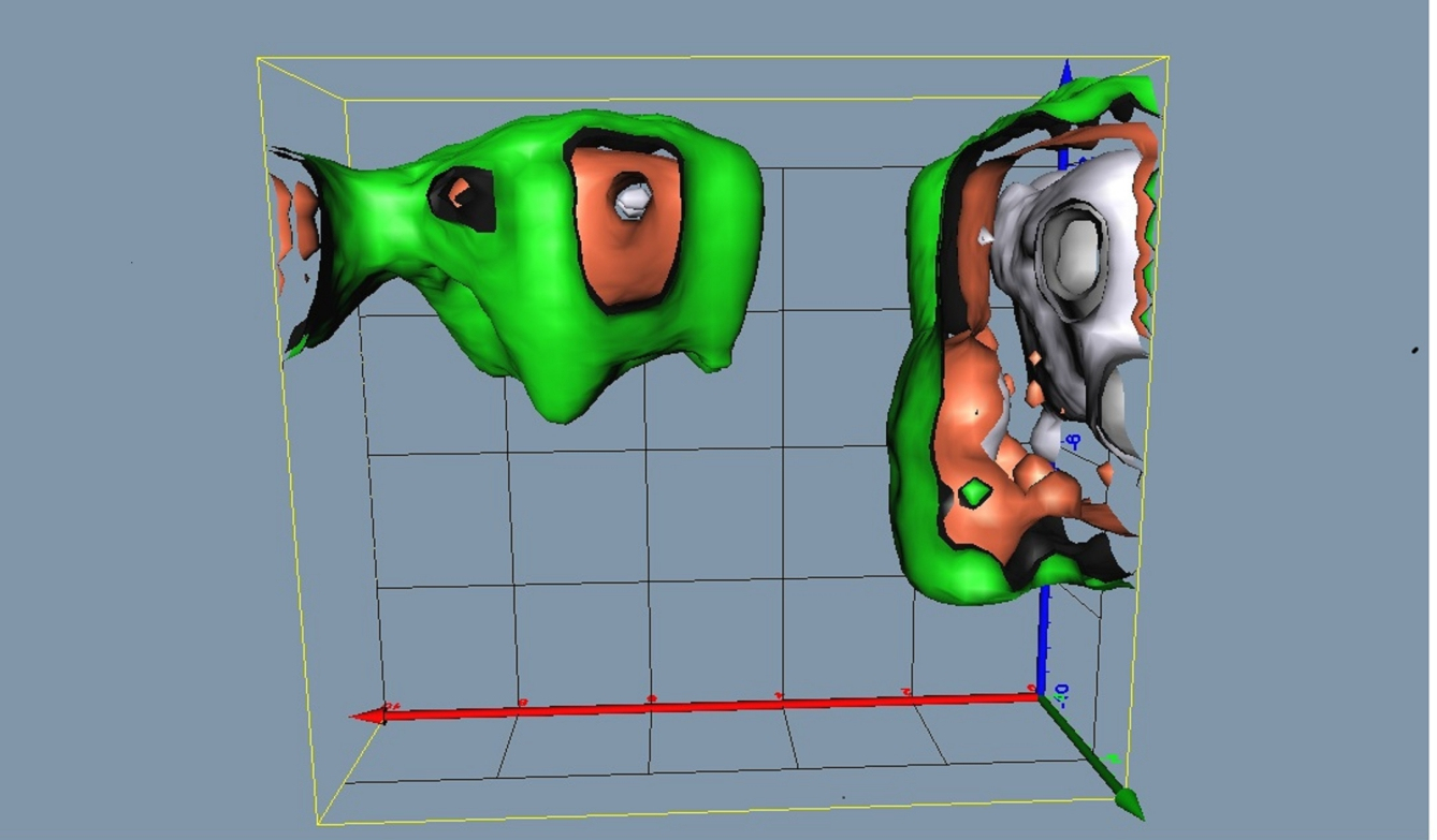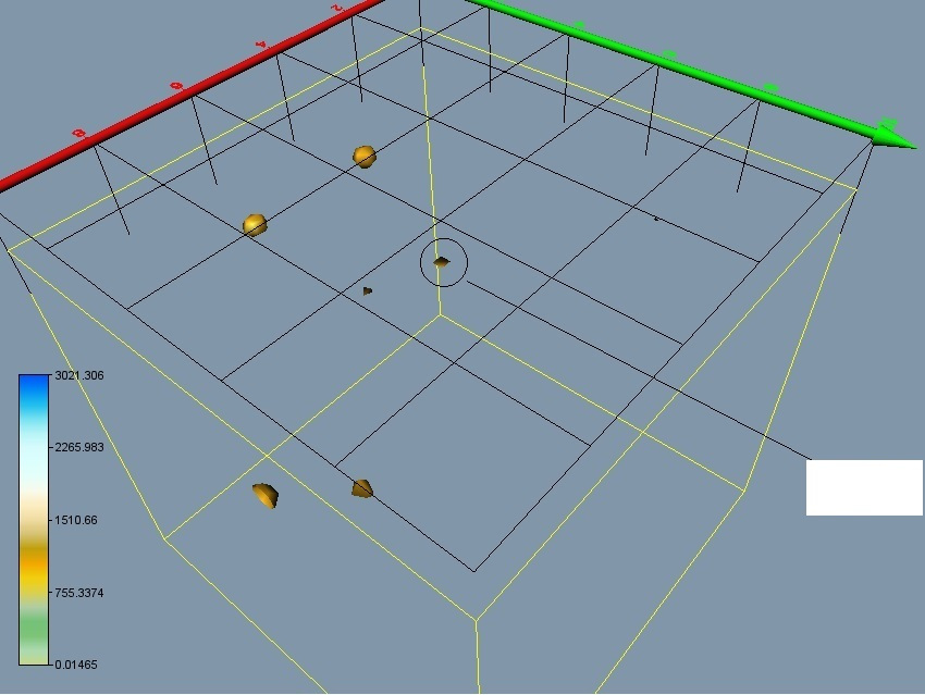 Vue 3D d'une surface de 100 m² ou 1000m3 et localisation d'objet